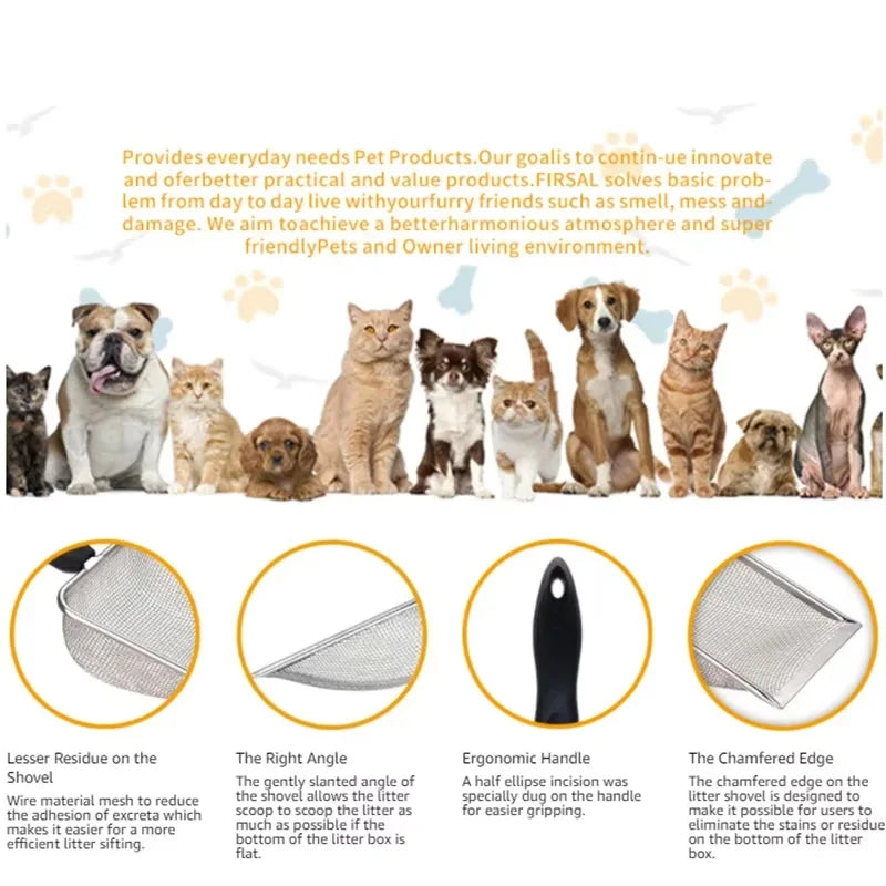 Menține litiera pisicii tale curată și igienică cu această lopățică din oțel inoxidabil, ideală pentru nisip fin sau gros. Designul cu găuri fine permite separarea rapidă a reziduurilor, lăsând nisipul curat și pregătit pentru următoarea folosire. Ușor de folosit și de curățat, indispensabil pentru orice stăpân de pisică.